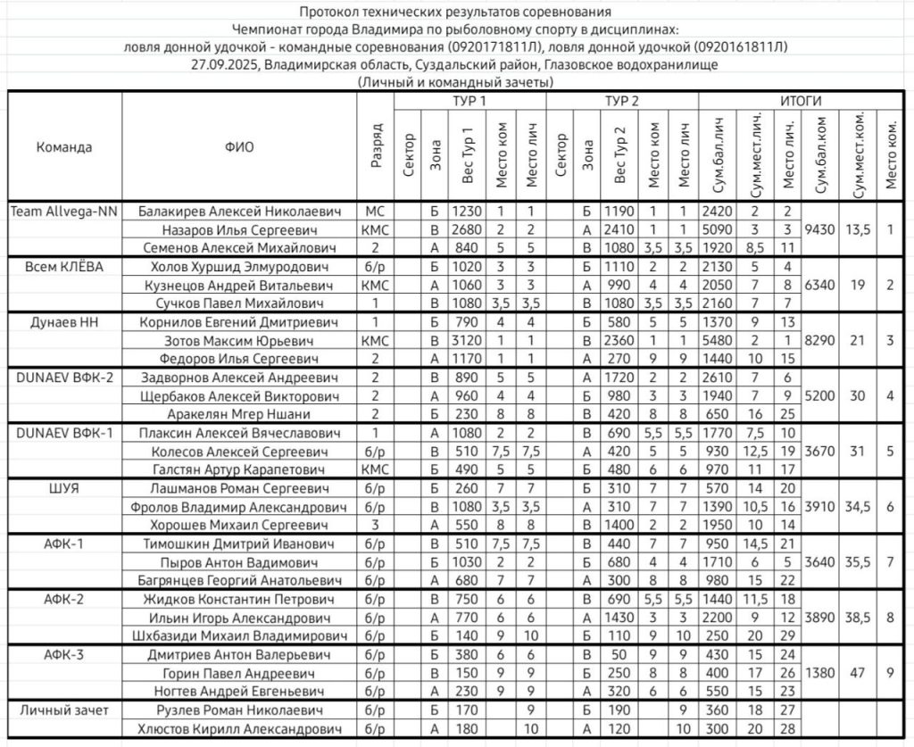 - Место: Максим Зотов (команда «Дунаев НН») – 5480 г